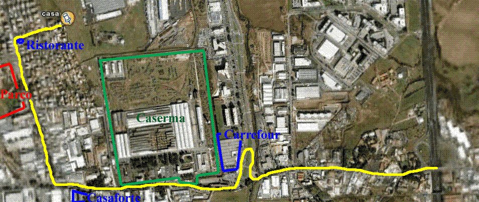 Passando davanti a Carrefour rimanete sulla Prenestina, la Caserma è sulla destraArrivati al Carrefour la strada viobbliga a girare a destra, rigirate subito a sinistra facendo l'inversione e ritornate sulla Prenestina sempre in direzione centro. |